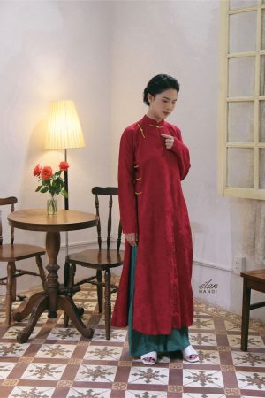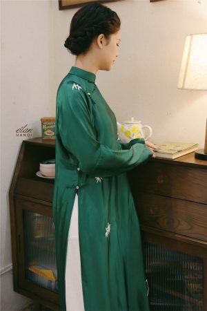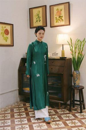 Áo dài ngũ thân lụa tơ tằm thêu tay