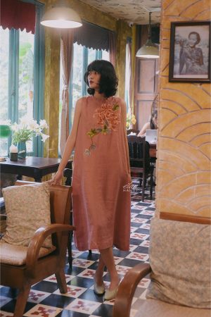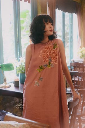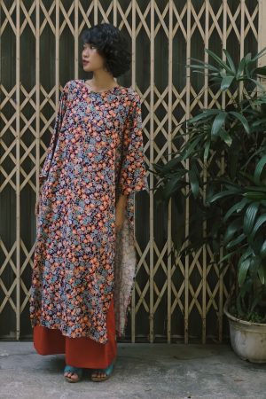 Áo dài dáng thụng hoạ tiết hoa hồng công