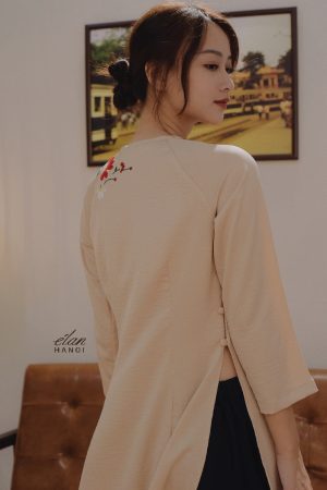 Áo sơ mi phối ren thêu tay hoa cỏ – Linen – Be