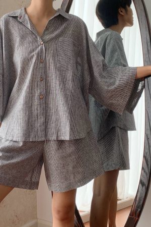 Bộ linen sọc xám