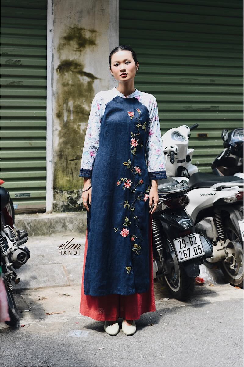 Áo dài tay hoa thêu tay