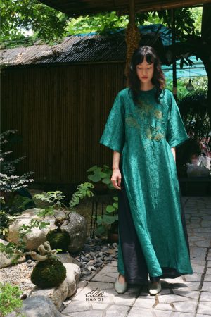 Áo dài vẽ tay cành hồng