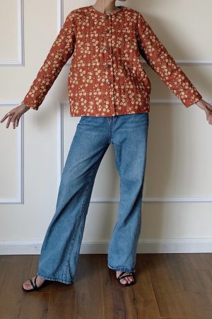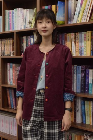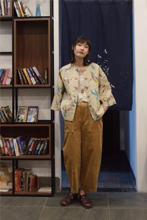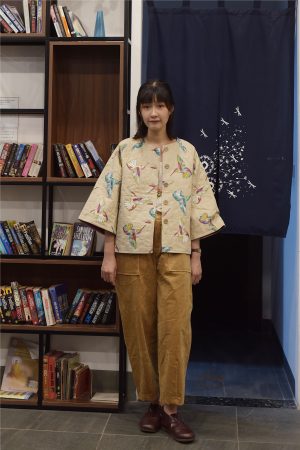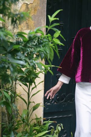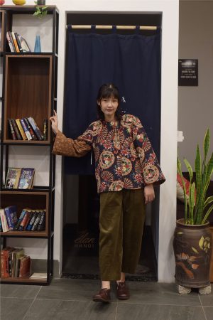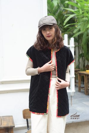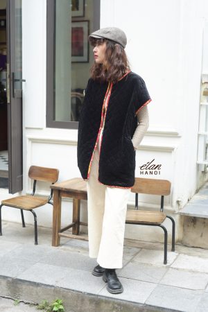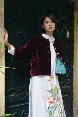 Áo khoác nhung the chần bông tay thêu tay hoa cúc