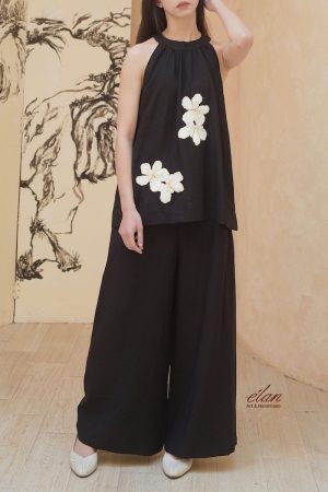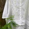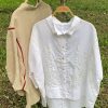 Áo sơ mi phối ren thêu tay hoa cỏ Linen Trắng
