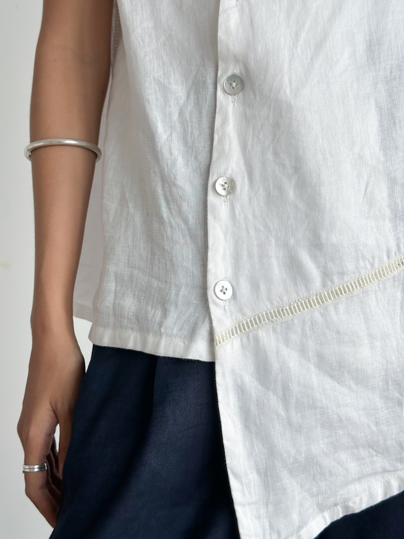 Áo sơ mi thêu tay hoa cỏ – Trắng