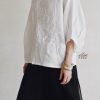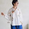 Áo sơ mi phối ren thêu tay hoa cỏ – Linen – Be
