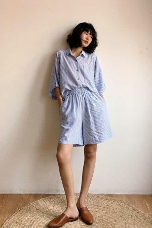 Bộ Loungwear kẻ ô xanh