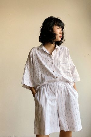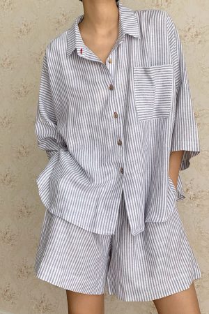 Bộ linen sọc xám