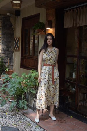 Váy yếm hoa vàng cổ ren