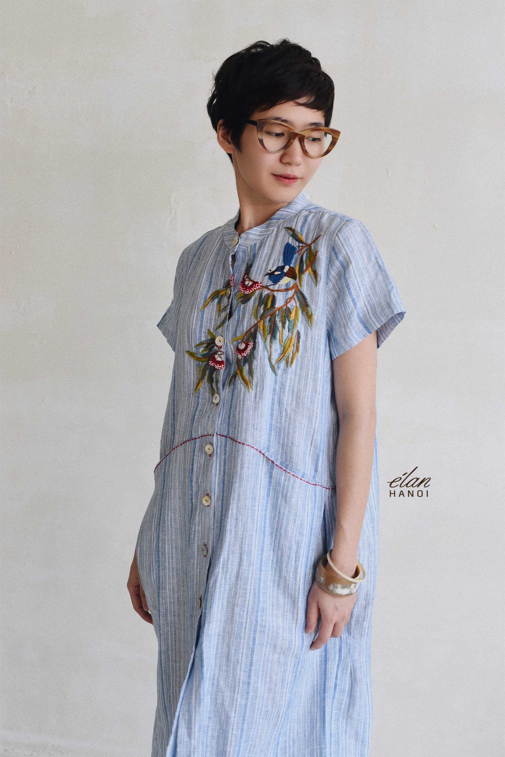 + M (Ngang ngực: 46; Dài tay: 17; Dài váy: 105)