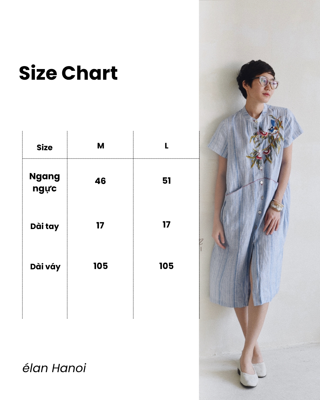 + L (Ngang ngực: 51; Dài tay: 17; Dài váy: 105)