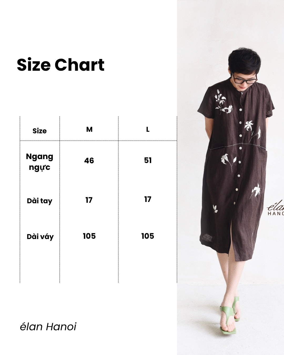+ L (Ngang ngực: 51; Dài tay: 17; Dài váy: 105)