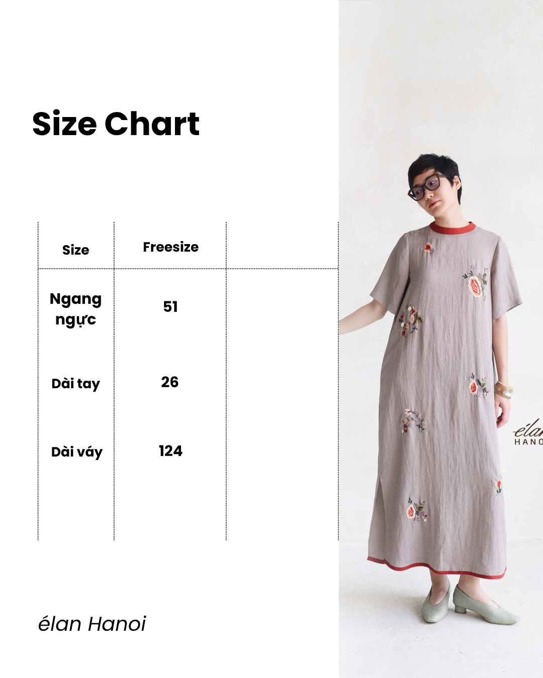 Size: freesize (Ngang ngực: 51; Dài tay: 26; Dài váy: 124)
