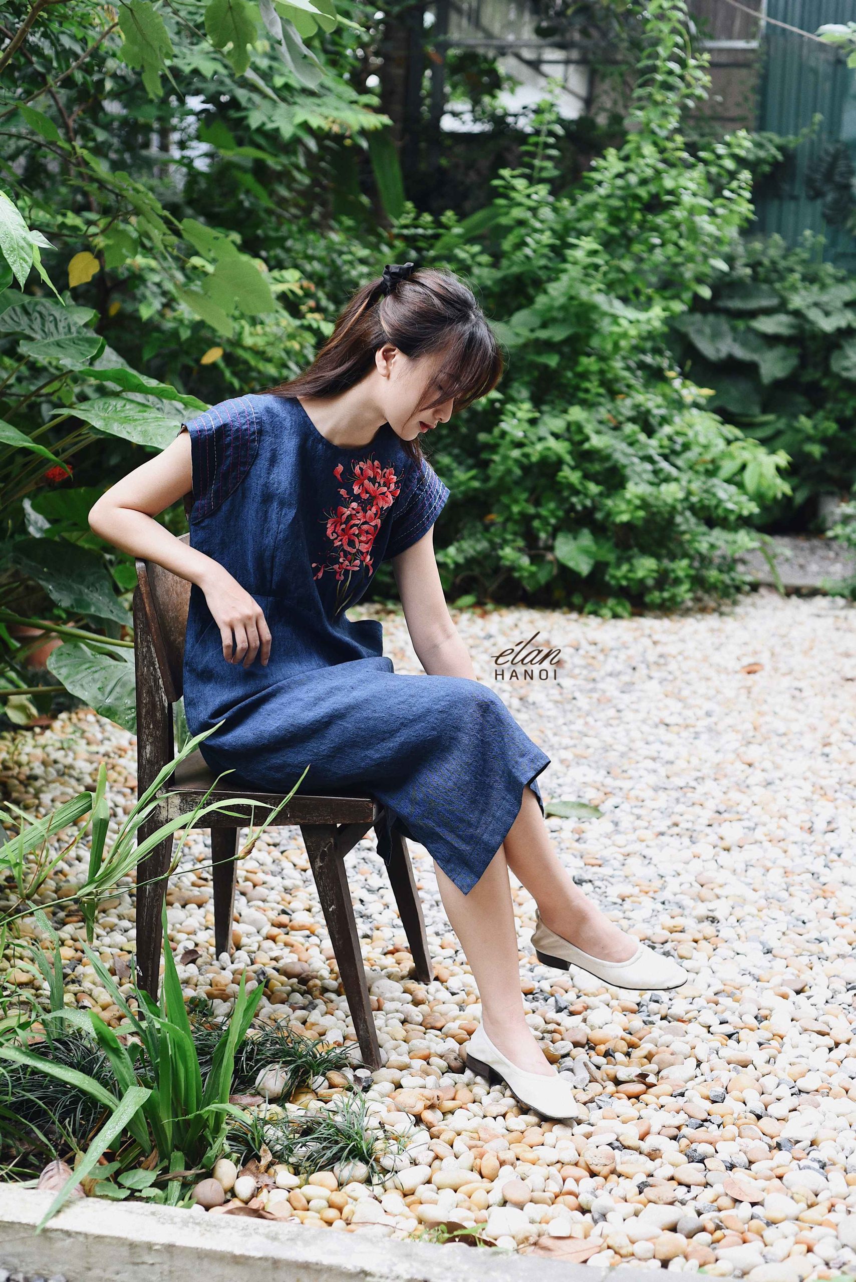 Váy tay chờm thêu tay hoa lan